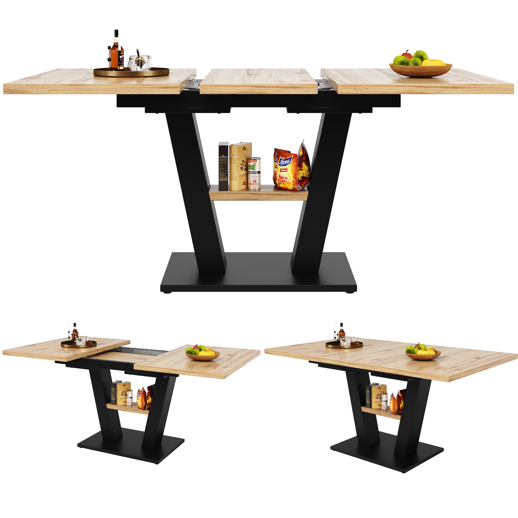 - The unique design and versatility of the telescopic table allow the tabletop to be enlarged or reduced as needed. It can be extended to create more table space as needed. It can easily be expanded to a dining area for 6-8 people. It can also be used as a temporary workbench, study table, or as a venue for small events, meeting the needs of family gatherings and restaurant events.